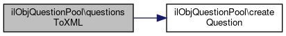 Here is the call graph for this function:| ilObjQuestionPool::questionsToXML | ( | $questions | ) |
