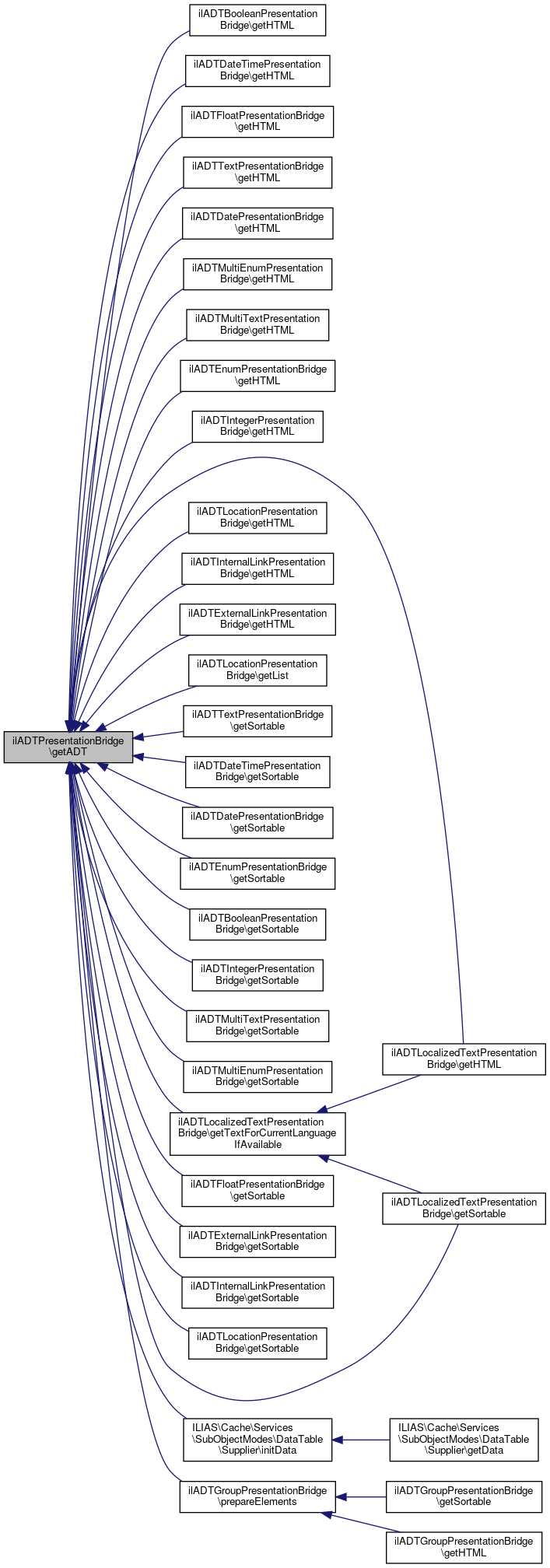 Here is the caller graph for this function:| ilADTPresentationBridge::getADT | ( | ) |