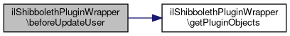 Here is the call graph for this function:| ilShibbolethPluginWrapper::beforeUpdateUser | ( | ilObjUser | $user | ) |
