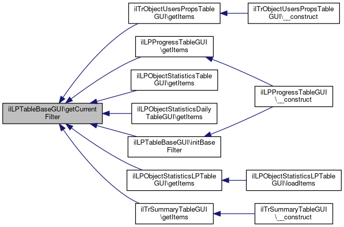 Here is the caller graph for this function:| ilLPTableBaseGUI::getCurrentFilter | ( | bool | $as_query = false | ) |