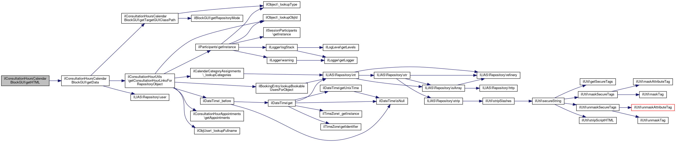 Here is the caller graph for this function:| ilConsultationHoursCalendarBlockGUI::getHTML | ( | ) |
