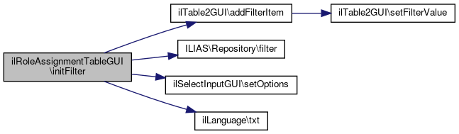Here is the caller graph for this function:| ilRoleAssignmentTableGUI::initFilter | ( | ) |