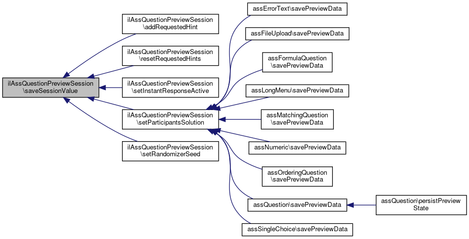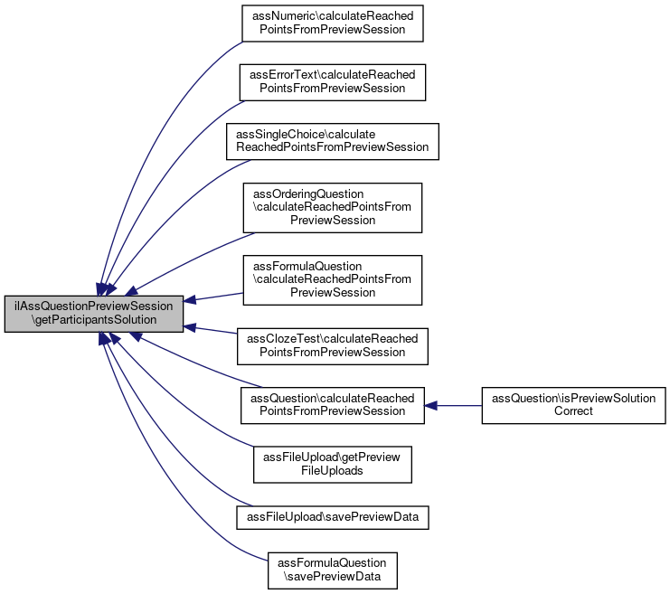 Here is the call graph for this function:| ilAssQuestionPreviewSession::setParticipantsSolution | ( | $participantSolution | ) |