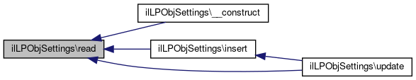 Here is the caller graph for this function:| ilLPObjSettings::read | ( | ) |