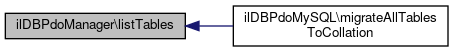 Here is the call graph for this function:| ilDBPdoManager::listTables | ( | ?string | $database = null | ) |