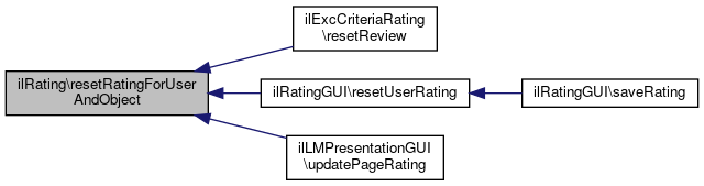 Referenced by ilExcCriteriaRating\resetReview(), ilRatingGUI\resetUserRating(), and ilLMPresentationGUI\updatePageRating().