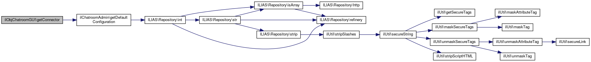 Here is the call graph for this function:| ilObjChatroomGUI::getConnector | ( | ) |