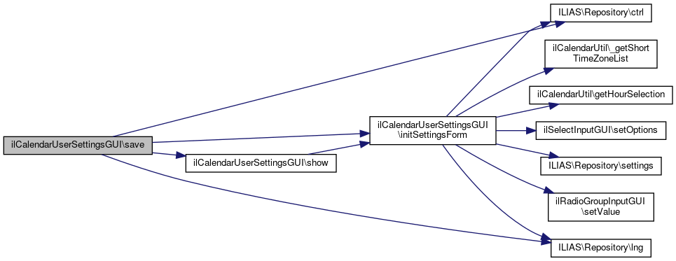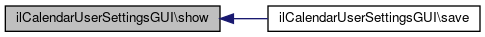Here is the caller graph for this function:| ilCalendarUserSettingsGUI::save | ( | ) |