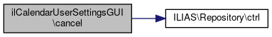 Here is the call graph for this function:| ilCalendarUserSettingsGUI::cancel | ( | ) |