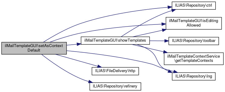 Here is the caller graph for this function:| ilMailTemplateGUI::setAsContextDefault | ( | ) |