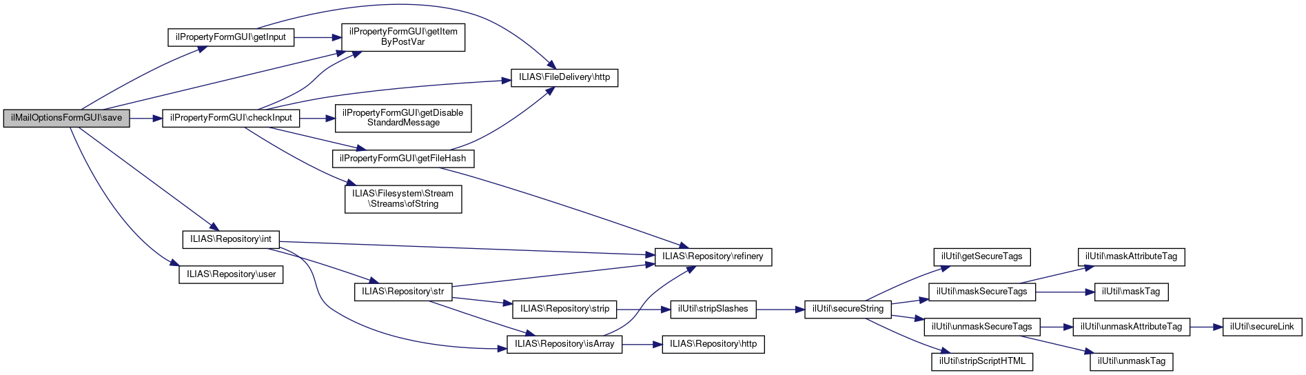 Here is the caller graph for this function:| ilMailOptionsFormGUI::save | ( | ) |