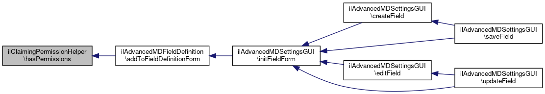 Here is the caller graph for this function:| ilClaimingPermissionHelper::hasPermission | ( | int | $a_context_type, |