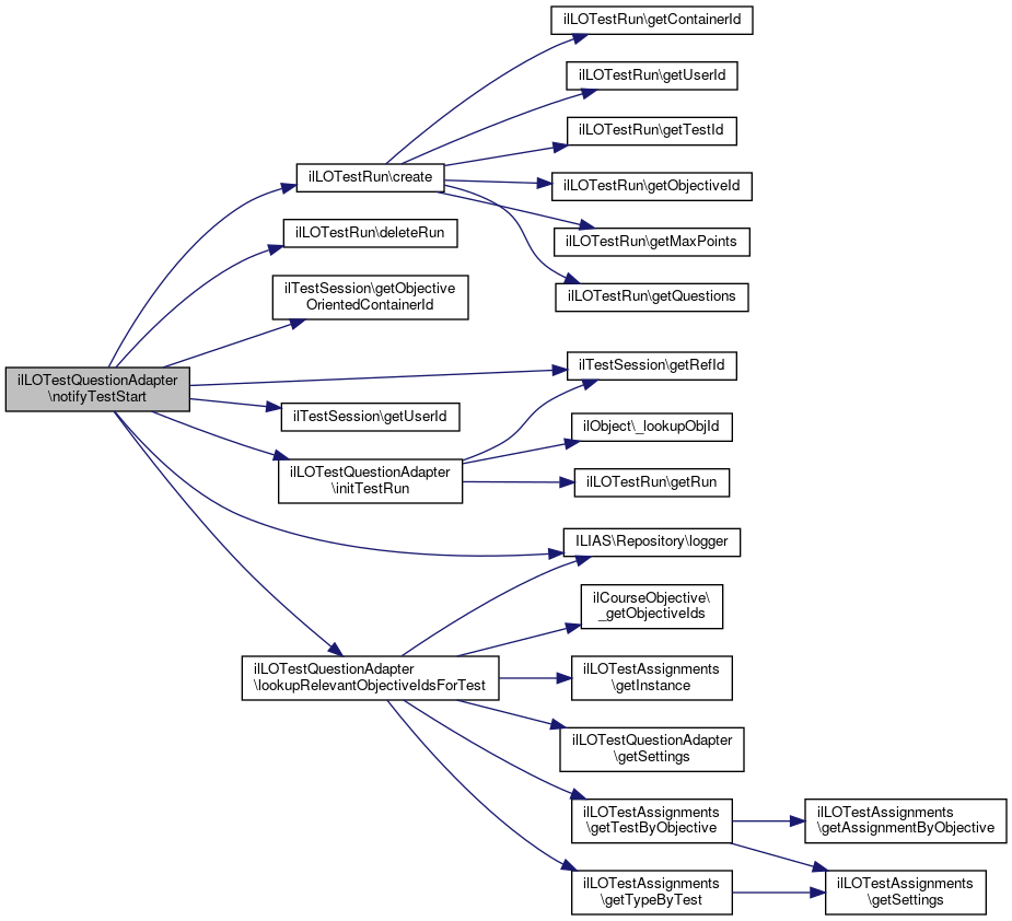 Here is the caller graph for this function:| ilLOTestQuestionAdapter::notifyTestStart | ( | ilTestSession | $a_test_session, |