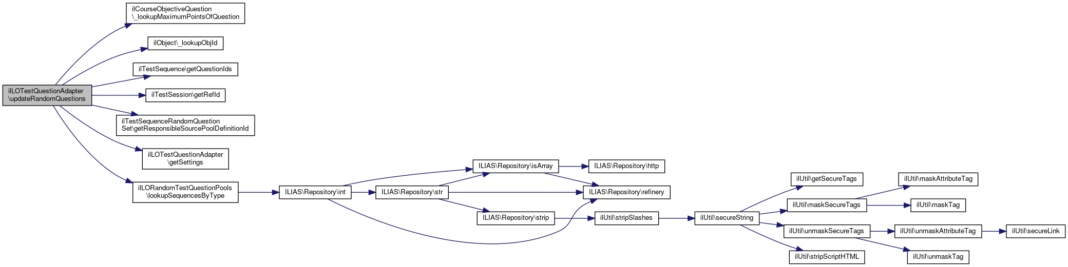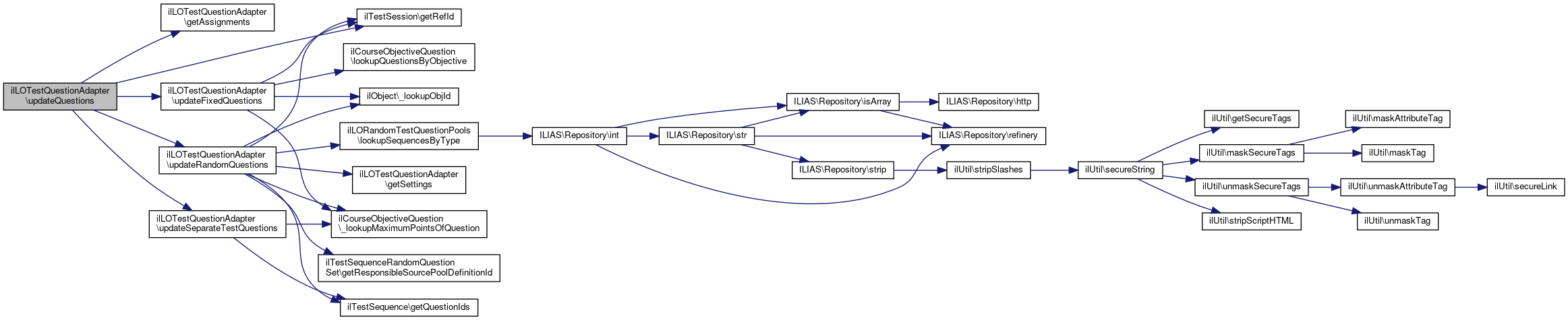 References getAssignments(), ilTestSession\getRefId(), updateFixedQuestions(), updateRandomQuestions(), and updateSeparateTestQuestions().