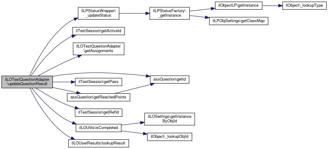 Here is the caller graph for this function:| ilLOTestQuestionAdapter::updateQuestionResult | ( | ilTestSession | $session, |