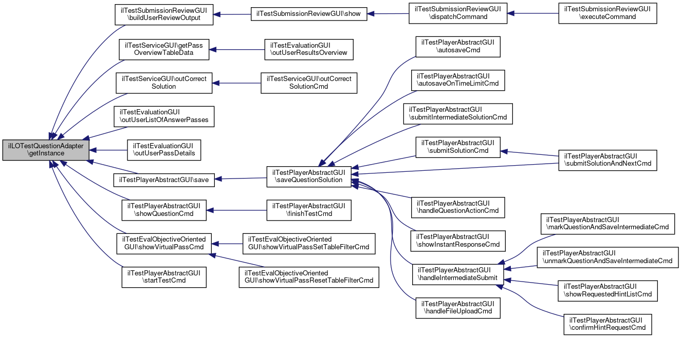 Referenced by ilTestSubmissionReviewGUI\buildUserReviewOutput(), ilTestServiceGUI\getPassOverviewTableData(), ilTestServiceGUI\outCorrectSolution(), ilTestEvaluationGUI\outUserListOfAnswerPasses(), ilTestEvaluationGUI\outUserPassDetails(), ilTestPlayerAbstractGUI\save(), ilTestPlayerAbstractGUI\showQuestionCmd(), ilTestEvalObjectiveOrientedGUI\showVirtualPassCmd(), and ilTestPlayerAbstractGUI\startTestCmd().