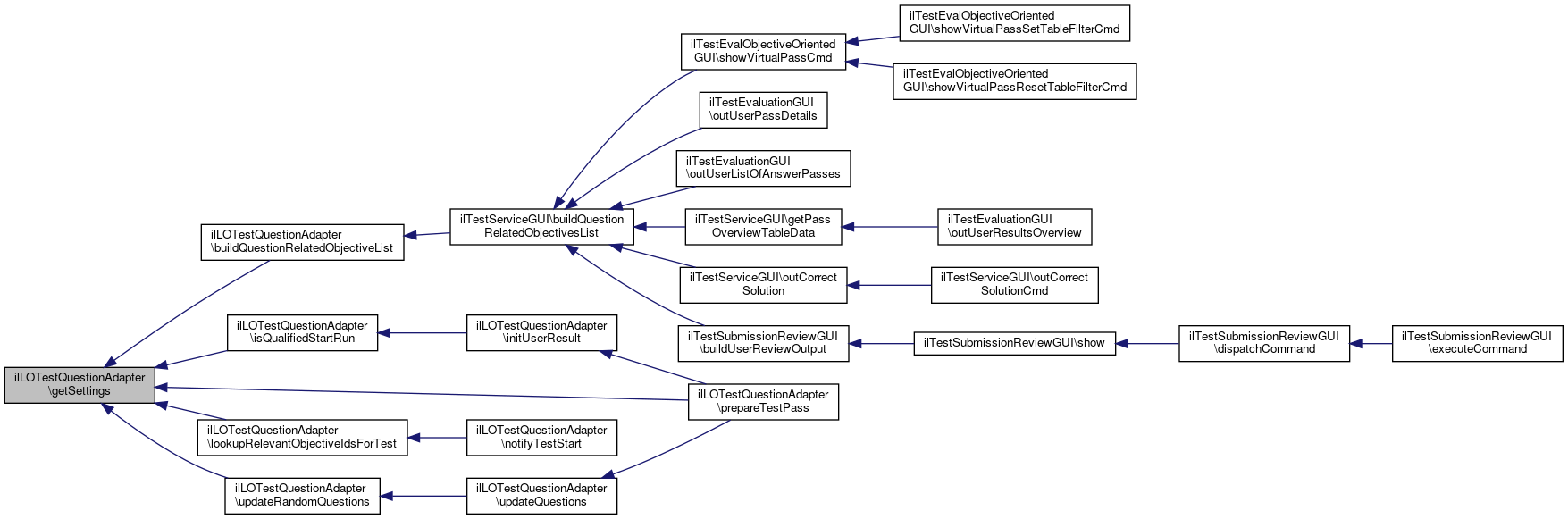 References buildQuestionRelatedObjectiveListByQuestions(), buildQuestionRelatedObjectiveListByTest(), getSettings(), getTestRefId(), ilLOSettings\TYPE_TEST_INITIAL, and ilLOSettings\TYPE_TEST_QUALIFIED.
