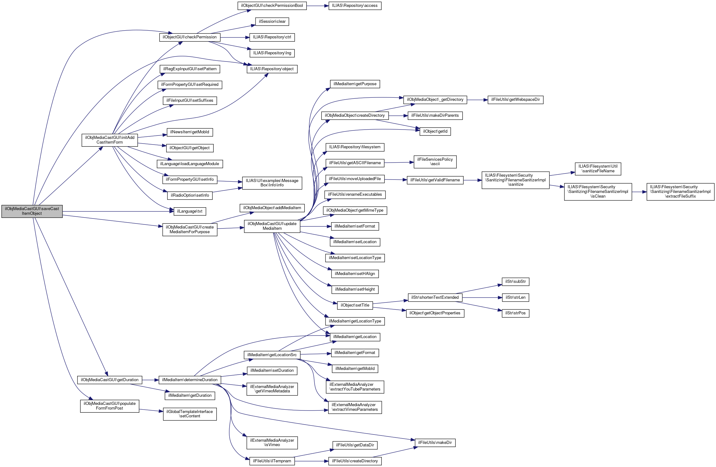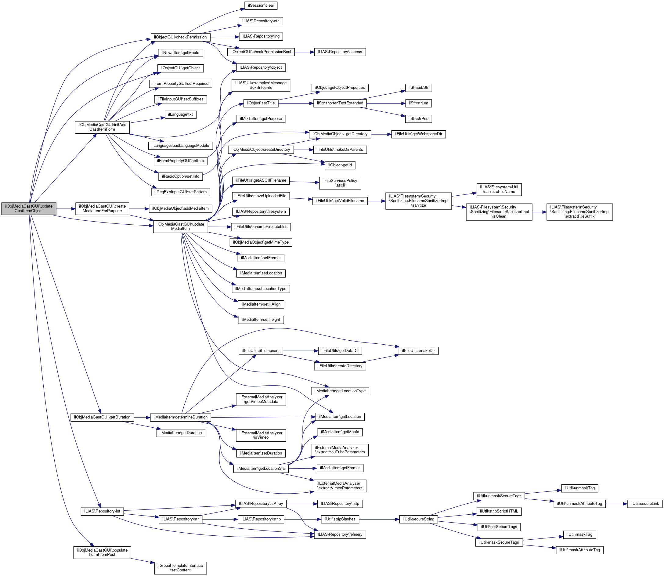 Here is the call graph for this function:| ilObjMediaCastGUI::updateCastItemObject | ( | ) |