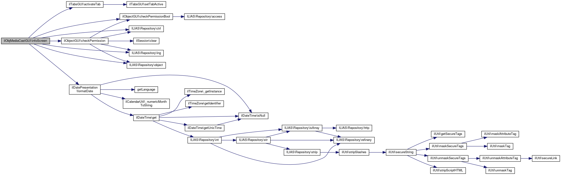 Here is the call graph for this function:| ilObjMediaCastGUI::infoScreen | ( | ) |