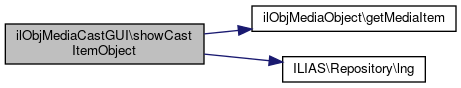 Here is the call graph for this function:| ilObjMediaCastGUI::showCastItemObject | ( | ) |