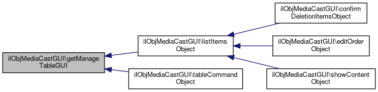 Here is the caller graph for this function:| ilObjMediaCastGUI::tableCommandObject | ( | ) |