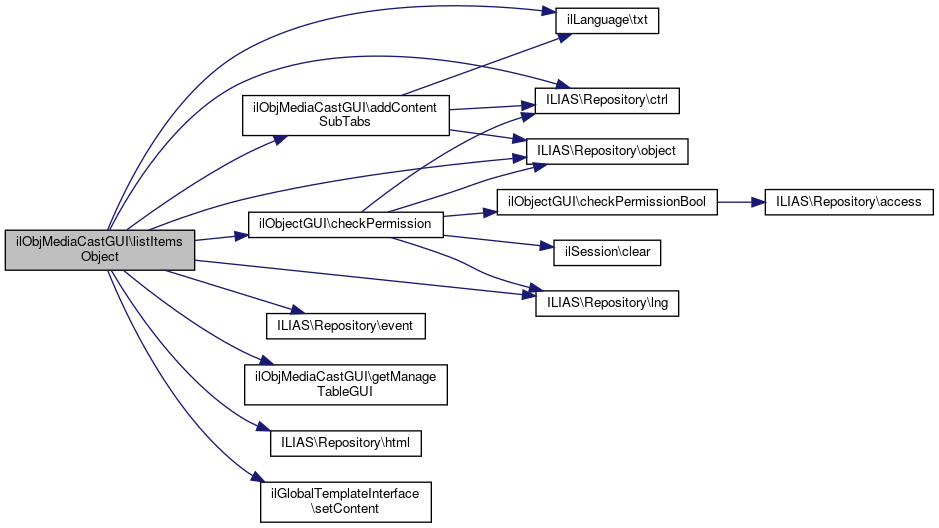| listItemsObject (bool $a_presentation_mode=false) | |