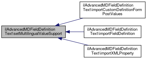 Here is the caller graph for this function:| ilAdvancedMDFieldDefinitionText::setMultilingualValueSupport | ( | bool | $multilingual_value_support | ) |