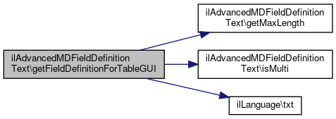 Here is the call graph for this function:| ilAdvancedMDFieldDefinitionText::getFieldDefinitionForTableGUI | ( | string | $content_language | ) |