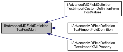Here is the caller graph for this function:| ilAdvancedMDFieldDefinitionText::setMulti | ( | bool | $a_value | ) |