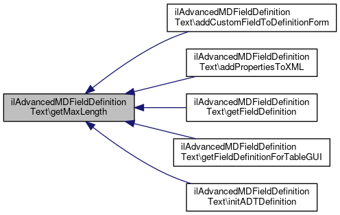 Here is the call graph for this function:| ilAdvancedMDFieldDefinitionText::getMaxLength | ( | ) |