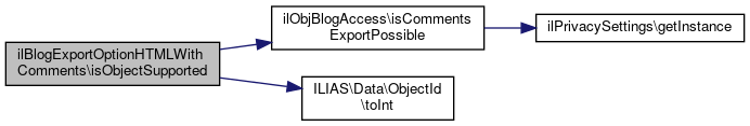 Here is the call graph for this function:| ilBlogExportOptionHTMLWithComments::isObjectSupported | ( | ObjectId | $object_id | ) |