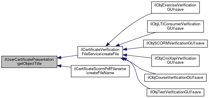 Here is the caller graph for this function:| ilUserCertificatePresentation::getObjectTitle | ( | ) |