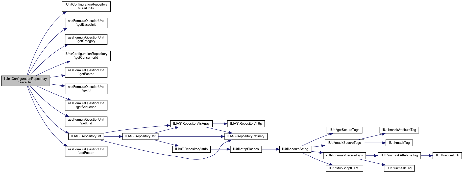 Here is the call graph for this function:| ilUnitConfigurationRepository::saveUnit | ( | assFormulaQuestionUnit | $unit | ) |
