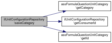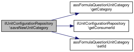 Here is the call graph for this function:| ilUnitConfigurationRepository::saveNewUnitCategory | ( | assFormulaQuestionUnitCategory | $category | ) |