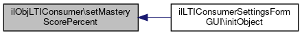 Here is the caller graph for this function:| ilObjLTIConsumer::setMasteryScorePercent | ( | float | $mastery_score_percent | ) |