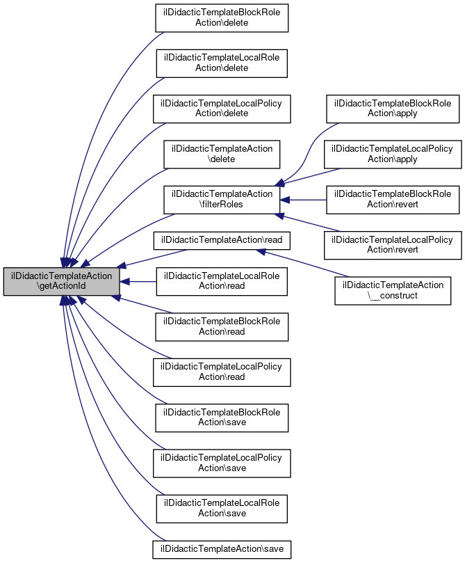 Referenced by ilDidacticTemplateBlockRoleAction\delete(), ilDidacticTemplateLocalRoleAction\delete(), ilDidacticTemplateLocalPolicyAction\delete(), delete(), filterRoles(), read(), ilDidacticTemplateLocalRoleAction\read(), ilDidacticTemplateBlockRoleAction\read(), ilDidacticTemplateLocalPolicyAction\read(), ilDidacticTemplateBlockRoleAction\save(), ilDidacticTemplateLocalPolicyAction\save(), ilDidacticTemplateLocalRoleAction\save(), and save().