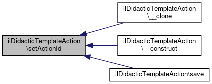 Here is the call graph for this function:| ilDidacticTemplateAction::setActionId | ( | int | $a_action_id | ) |