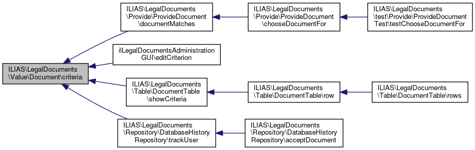 Here is the caller graph for this function:| ILIAS\LegalDocuments\Value\Document::criteria | ( | ) |