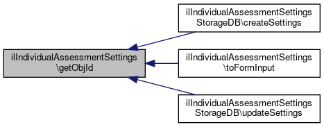 Here is the caller graph for this function:| ilIndividualAssessmentSettings::getObjId | ( | ) |
