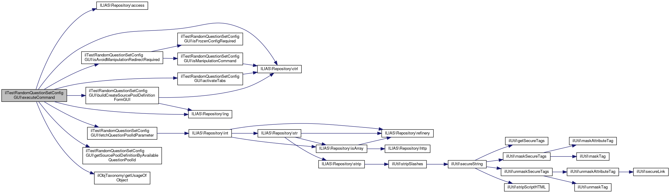 Here is the call graph for this function:| ilTestRandomQuestionSetConfigGUI::executeCommand | ( | ) |