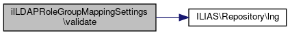 Here is the call graph for this function:| ilLDAPRoleGroupMappingSettings::validate | ( | ) |