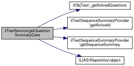 Here is the call graph for this function:| ilTestService::getQuestionSummaryData | ( | ilTestSequenceSummaryProvider | $testSequence | ) |
