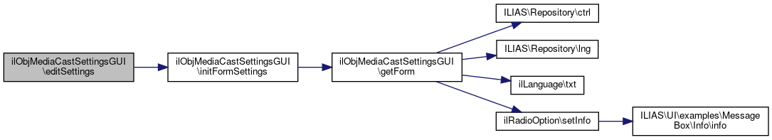 Here is the call graph for this function:| ilObjMediaCastSettingsGUI::editSettings | ( | ) |