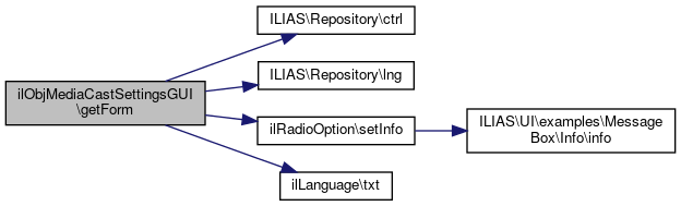 References ilObjectGUI\$access, ilObjectGUI\$ctrl, getForm(), initFormSettings(), initMediaCastSettings(), and ILIAS\Repository\lng().