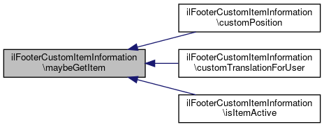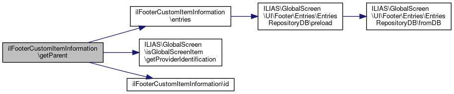 Here is the caller graph for this function:| ilFooterCustomItemInformation::getParent | ( | isItem | $item | ) |
