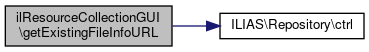 Here is the call graph for this function:| ilResourceCollectionGUI::getExistingFileInfoURL | ( | ) |