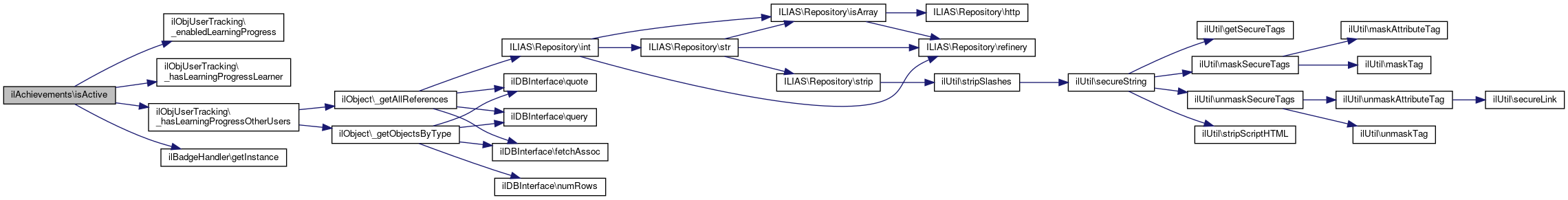 Here is the call graph for this function:| ilAchievements::isActive | ( | int | $service | ) |