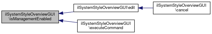 Here is the caller graph for this function:| ilSystemStyleOverviewGUI::isManagementEnabled | ( | ) |