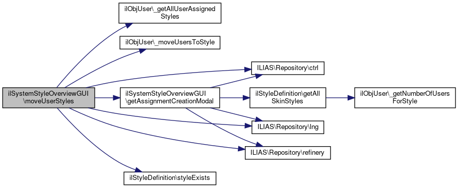 References $DIC, ilObjUser\_getAllUserAssignedStyles(), ilObjUser\_moveUsersToStyle(), ILIAS\Repository\ctrl(), getAssignmentCreationModal(), ILIAS\Repository\lng(), ILIAS\Repository\refinery(), ilStyleDefinition\styleExists(), and ilSystemStyleMessage\TYPE_SUCCESS.