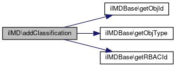 Here is the call graph for this function:| ilMD::addClassification | ( | ) |